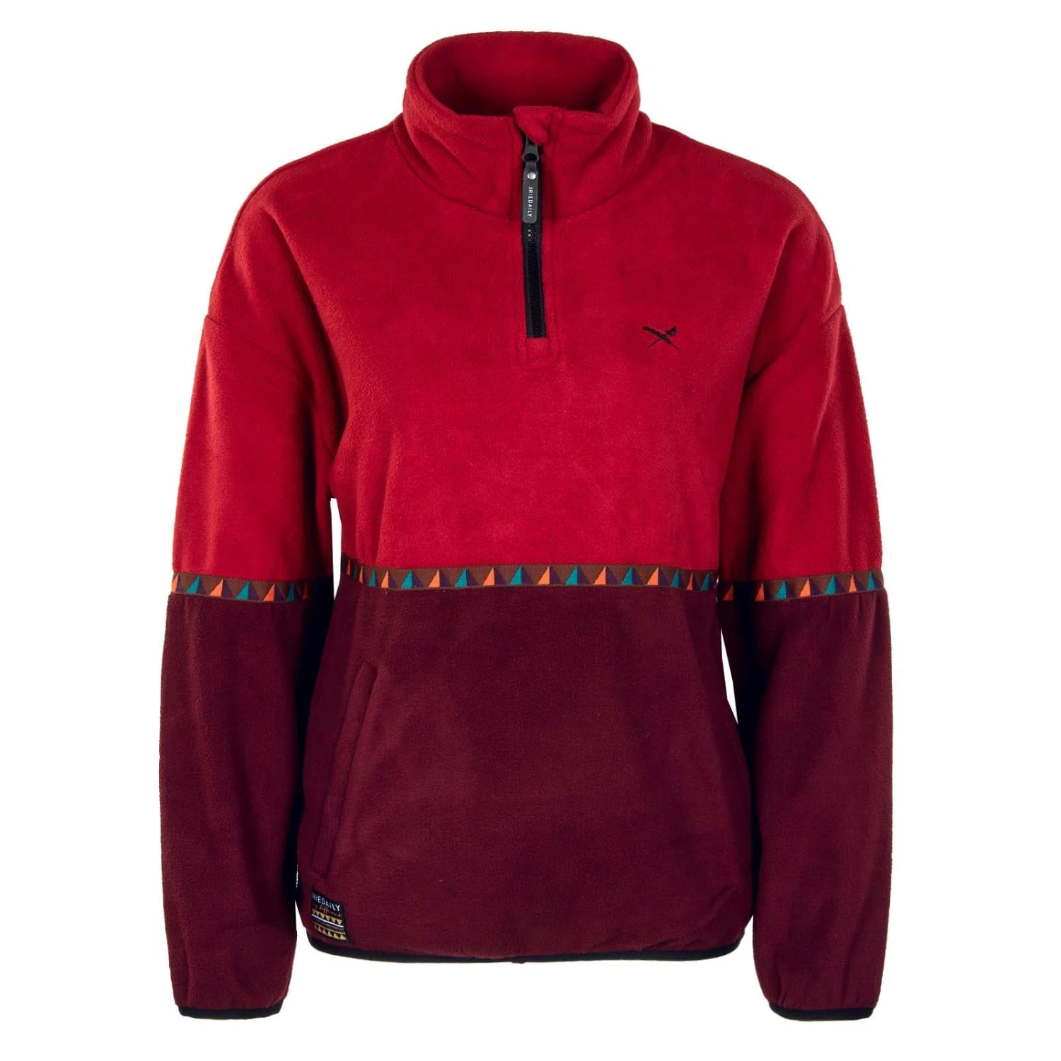 Der ,IRIEDAILY Holina Fleece Troyer ,ist ein ,konstrastfarbiger Pullover ,aus weichem Polar Fleece, welches aus recyceltem Polyester hergestellt wurde. Das Band mit geometrischem Muster gibt dem Troyer mit dem typischen halblangen Reißverschluss den letzten Schliff.