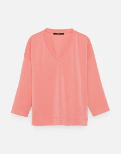 Modal-Mix * Gummibund mit Raffungen hinten * V-Neck * weiter Body * lässig überschnittene Schultern * verkürzter Ärmel